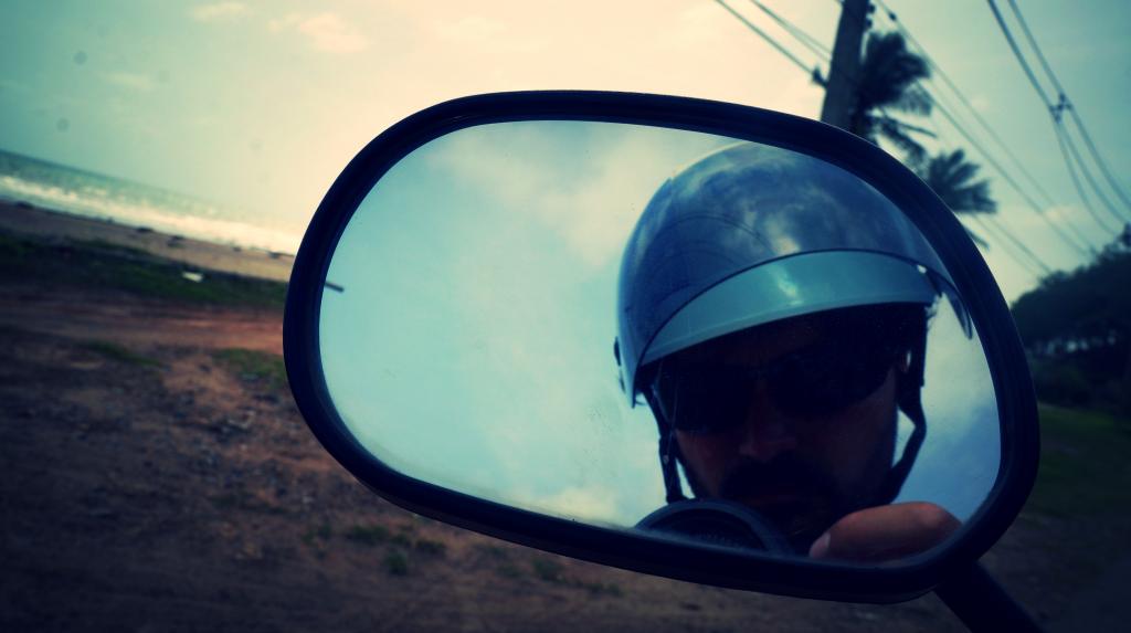 Rearview-mirror-selfie by a beach (guessing it’s Khlong-Kong)